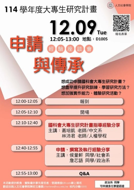 人社院邀請114年度獲得國科會大專生研究計畫補助之同學與指導