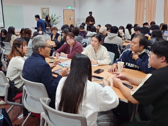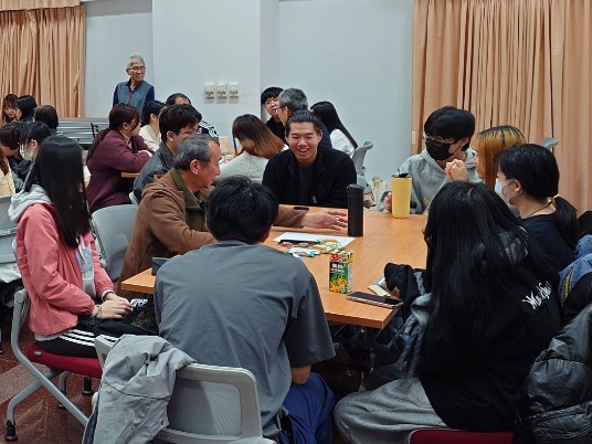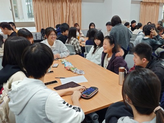 分組討論時,六位長者走入不同組別,分享各自的生命故事。起初同學們略顯拘謹,但氣氛很快就熱絡起來,中場休息時大家仍意猶未盡,討論熱絡不減。林奶奶分享關懷獨居長者的經驗與基督信仰的力量。李爺爺則提到,慈光堂為老年人提供各項照顧服務,但同時也面臨一定的困難;此外,該機構還開設各種課程,重視與社區的凝聚與互動。葉奶奶注重保健,也重視家庭和樂,向同學們分享了豐富的人生經驗與溫暖的提醒。張奶奶活潑開朗,熱愛生命與學習,認為平凡知足,與所愛的人共度餘生才是真正的幸福。另一位林奶奶則分享做手工藝與小本生意的歷程。張爺爺則提醒同學們要善待身邊的人事物,保持感恩與付出的心。