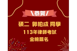 恭喜碩班 郭柏成同學 考上律師啦!