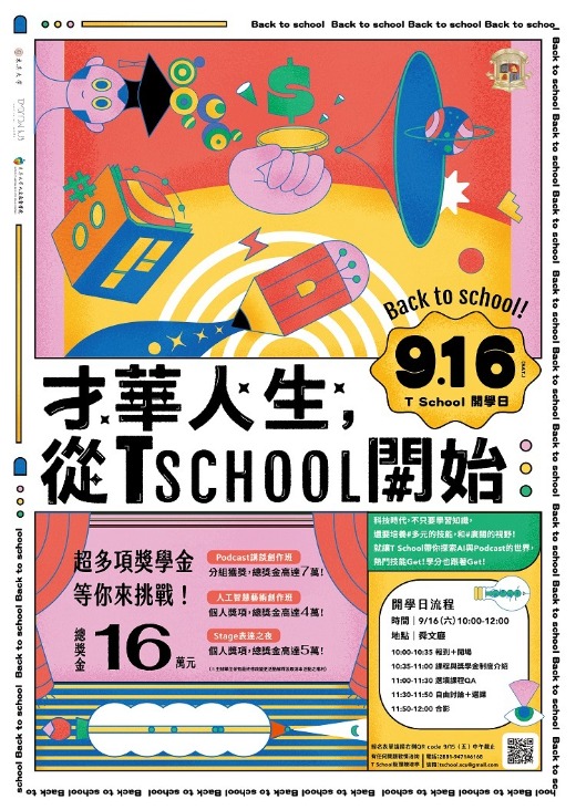 在T-School,不同於以往純學術性的修課,你的作業將會變成是TED演講、AI生成藝術作品、Podcast節目、視覺藝術作品、一段微影片,以及創業發表會。